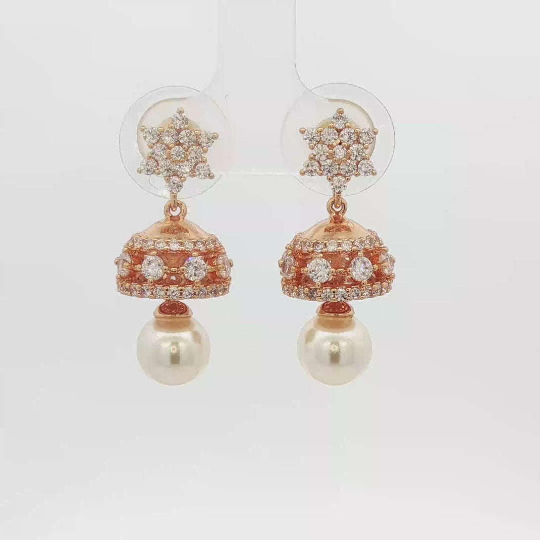 Rose Gold Star Diamond Jhumka with Pearl Drop (2.7 cm Length)